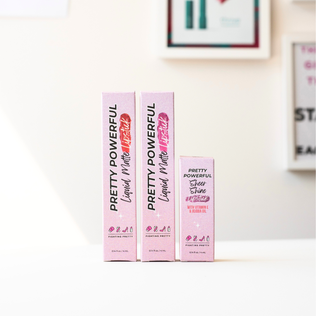 The Pretty Powerful Lipstick Bundle by Fighting Pretty was designed to remind you of your power and strength with every pout. Just one swipe will help you take the on the day and leave you feeling Pretty and Powerful!